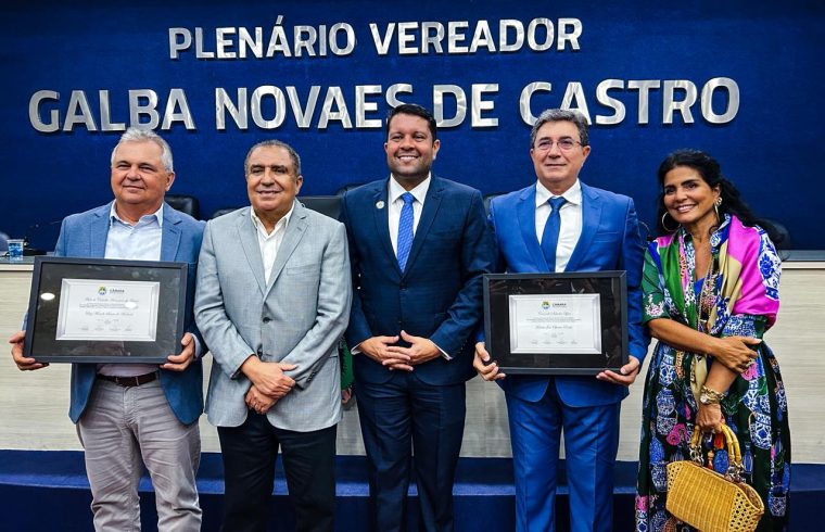 A Câmara Municipal de Maceió homenageou os empresários Tarcísio Oliveira Rocha e Luiz Marcelo de Andrade pelas contribuições ao desenvolvimento econômico da capital. Eles foram reconhecidos em sessão nesta segunda-feira (16), por proposição do vereador Allan Pierre, aprovada pelo parlamento.